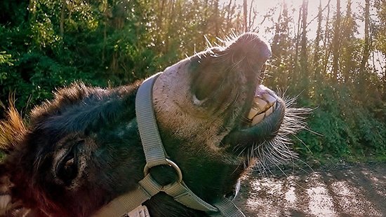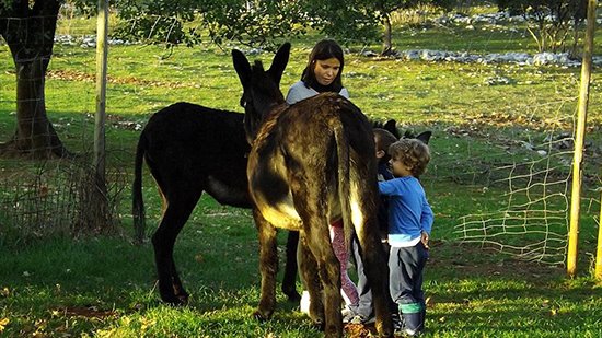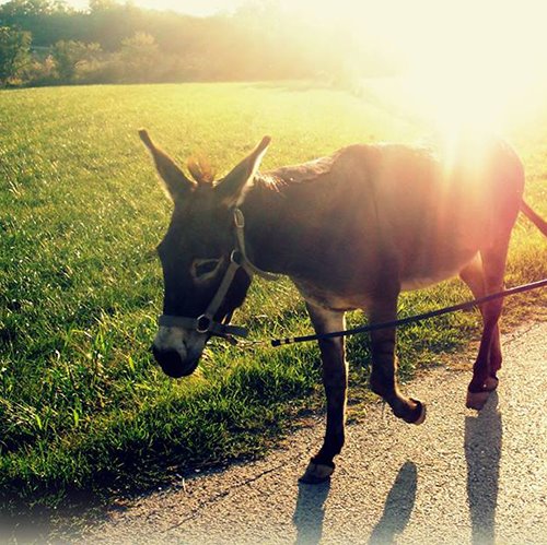 Con Lavanda e Mary, dall’anno scorso ho iniziato a proporre dei laboratori di ono-didattica che mi hanno permesso di condividere con famiglie e bambini tutto ciò che di meraviglioso ho letto, imparato, studiato e appreso personalmente su questi straordinari animali tanto sottovalutati, contribuendo così a riscattarli dai falsi stereotipi che si sono creati su di loro. Al contrario, infatti, sono creature intelligenti, riflessive e capaci di sorprendere con la loro simpatia e curiosità. Il turismo someggiato, nella sua accezione più classica, prevede la percorrenza a piedi di tratte più o meno lunghe, con l’ausilio degli asini per il trasporto di zaini e rifornimenti, in modo da rendere più leggera e agevole la camminata agli escursionisti, con la possibilità di salire in groppa agli animali. L’ono-didattica, invece, abbinata a una passeggiata a passo d’asino, dà risalto all’aspetto emozionale e relazionale che quest’attività è capace di regalare a chi la pratica e che, a mio avviso, è la vera essenza di un’esperienza asinina. Infatti, l’asino è maestro e compagno di viaggio, che ci affianca nell’esplorazione, senza necessariamente dover essere cavalcato o caricato di pesi. È un compagno ideale per chi vuole godere del paesaggio lentamente e in silenzio: è calmo nel suo procedere, permettendo così di concentrarsi su profumi, suoni e dettagli dell’ambiente. Al tempo stesso è un animale molto prudente, tanto che anche un piccolo ostacolo, come la presenza di acqua, di un fossato o di un tombino, può intimorirlo e bloccarlo. È in questi momenti che devi entrare in empatia con lui, rassicurarlo e facendogli sentire che si può fidare di te. Quando si lascia andare, capisci che ce l’hai fatta ed è una grandissima soddisfazione. Camminare al suo fianco richiede, pertanto, l’instaurarsi di un rapporto di fiducia, è un dare e un ricevere, ed è questo a rendere ogni attività un’autentica esperienza relazionale. Una passeggiata a passo d’asino o un laboratorio di ono-didattica è un’esperienza insolita per tutta la famiglia: per gli adulti è un invito a rallentare, ascoltare e osservare. Per i bambini è un'occasione per conoscere un amico e un maestro dolce e affettuoso, che insegnerà loro a essere pazienti, collaborare e stare assieme con semplicità, stimolando lo spirito di osservazione e la curiosità. Le passeggiate con Noè e le attività di ono-didattica con Mary e Lavanda mi hanno dimostrato quanto interesse e curiosità suscita la vista di questi dolcissimi animali. Attirano gli sguardi dei passanti, dei ciclisti e degli automobilisti, che immancabilmente si fanno scappare un sorriso e si fermano per accarezzarli, fotografarli e per conoscere la loro storia. È raro vederli e, ancor di più, se passeggiano per il paese o per un sentiero. Ciò che più mi colpisce durante i laboratori è che oggi i bambini, fortunatamente, non associano l’asino all’ignoranza e alla stupidità, come invece la tradizione ci ha sempre tramandato. Al contrario, lo identificano come animale intelligente, anche se tendono comunque a considerarlo inferiore al cugino cavallo. Questo, solitamente, mi dà lo spunto per iniziare a lavorare su verità, falsità e sulla storia di questi animali, prima di cominciare ad interagire con Mary e Lavanda. Un’esperienza asinina sensibilizza bambini e adulti al rispetto e all’amore per la vita animale, oltre che favorire la socializzazione e l’incontro. Con il loro procedere attento e meditato gli asini ci aiutano a osservare con occhi nuovi e curiosi il paesaggio che stiamo attraversando. Il loro passo sarà il nostro, la loro curiosità diventerà la nostra, così come la loro attenzione per suoni, rumori e odori. Potremo così riscoprire quanto è piacevole sentirsi in armonia con la natura, in un tempo che ormai corre troppo in fretta, facendoci dimenticare che ogni tanto fa bene rallentare fisicamente e mentalmente. Sono davvero tante le cose che ho imparato relazionandomi con loro: cose che prima davo per scontate o banali, ora hanno acquistato valore. Passo dopo passo, zoccolo dopo zoccolo, camminando a ritmo lento, seguendo l'andatura calma e meditata del mio Noè, ho imparato a essere più riflessiva e prudente e ho capito che la lentezza è un pregio, che troppo spesso sottovalutiamo. Come loro, anche noi dovremmo abituarci a prenderci del tempo per conoscere, capire e riflettere prima di agire. Il suo comportamento mi incuriosisce giorno dopo giorno e spesso mi fa sorridere. È bello osservare il suo sguardo attento, la sua sensibilità, la sua prudenza e l'attenzione con cui seleziona le erbe da brucare e gustare a occhi socchiusi. Continue piccole soste per annusare e pascolare, danno anche a me il tempo di "ruminare" pensieri e ricordi. Se siete curiosi di fare un tuffo nel mondo asinino, le occasioni in Friuli Venezia Giulia non mancano. Sono diverse le realtà che propongono passeggiate someggiate e attività ono-didattiche: dalla bassa friulana alla Valle del Cormor, dal Carso Isontino a quello Triestino, dal Pordenonese alle Dolomiti Friulane. Il mio consiglio è di approfittarne perché, credetemi, negli asini c’è molto di più di quanto crediamo! Se in futuro vi capiterà di percorrere le piste ciclo-pedonali nella Piana del Preval, guardatevi bene attorno, potreste vedermi passeggiare con il mio Noè e, se vorrete condividere il cammino, sarete i benvenuti.