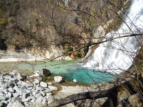 La cascata assume riflessi smeraldo