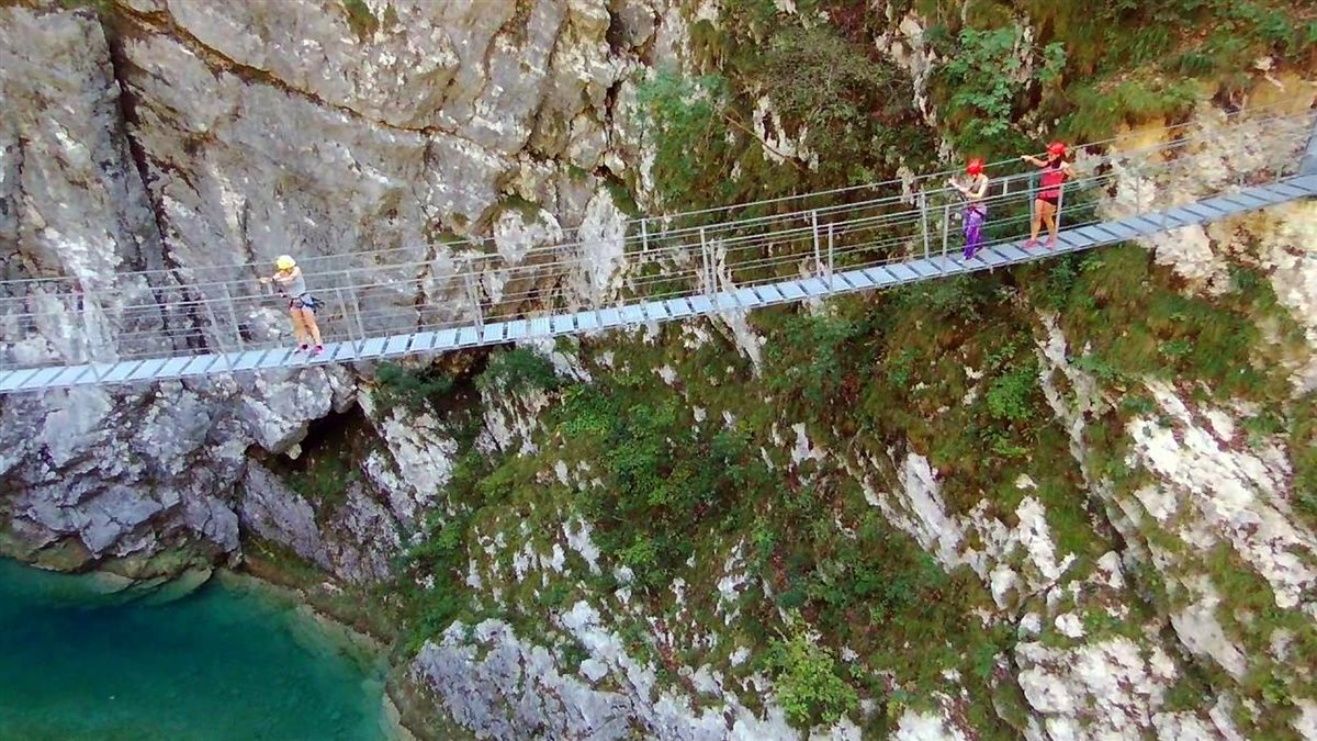Il ponte è lungo, sospeso, una struttura metallica con funi e gradini di acciaio. Indosso il caschetto e l’imbragatura forniti dal custode in attesa all’ingresso, assieme alle necessarie istruzioni per vivere l’esperienza in totale sicurezza. Così pronta, mi arrampico sul costone, contemplo il ponte e avanzo timidamente i primi passi fino a raggiungere l’estremità opposta.