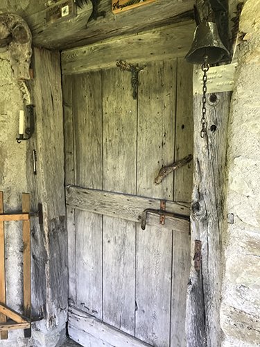 Ma arriviamo alla Casera Campo. Pietra e legno sapientemente uniti da chi questa terra l’amava e non la sfruttava. Rispettoso delle stagioni e della vita, sapendo di essere parte di una natura che lo avrebbe sostenuto solo se amata e compresa. Su un sasso, scolpito dal malgaro in un momento di tranquillità, il ritratto di un animale. “Ce ne sono altri sul sentiero” mi spiega Giorgio vedendomi curioso. Guardo bene. È un cervo stilizzato, con grosse corna e due occhi intensi. Sembra ricambiare il mio sguardo.