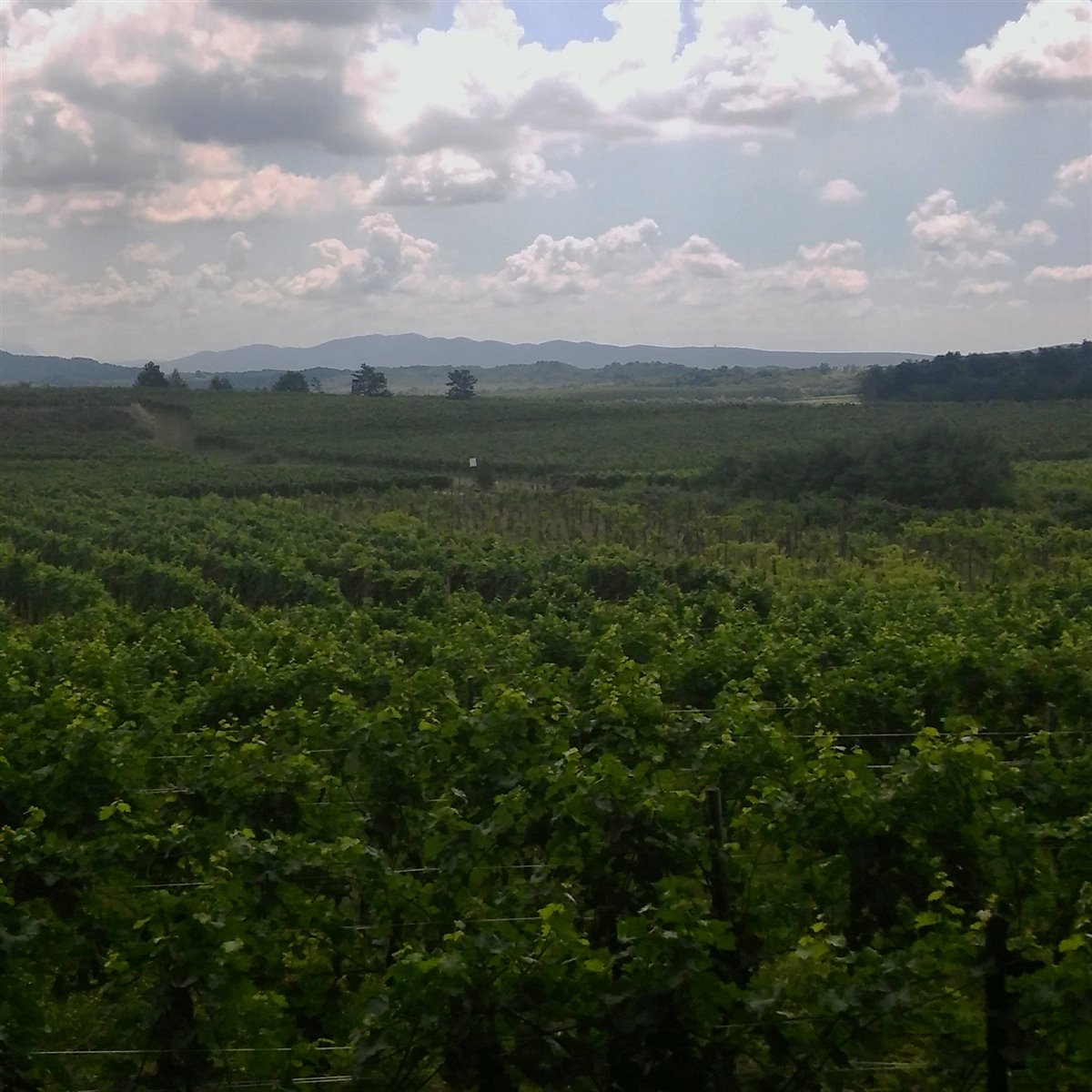 Di fronte, una distesa sterminata di alberi e vigne. Giri, lasci alle spalle Corno di Rosazzo e Cormons e prosegui con la Slovenia in fronte. Il parcheggio è ampio e ci sono persino le toilette pubbliche pulite, gli spazi pic nic, le aree per i bambini. C’è un silenzio e una calma rigenerante e, a parte qualche ciclista proveniente dalla ex dogana, ci siamo ritrovati solo noi tre e una coppia di anziani innamorati.
