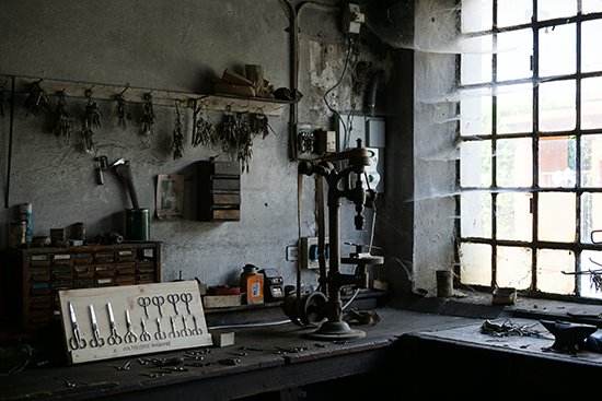 Che la zona fosse ricca, soprattutto in passato, di coltellerie lo sapevo, quello che non conoscevo era il numero di laboratori presenti. 50? 100? Per un centro di 12.000 abitanti mi sembravano numeri di rilievo. Ebbene mi sbagliavo. Nel momento di maggiore espansione vi erano ben 400 (si, avete letto bene!) laboratori dedicati alle lame: chi era specializzato nella produzione di forbici per la sartoria, chi in cavatappi, chi in coltelli per elettricista, e molti altri ancora.