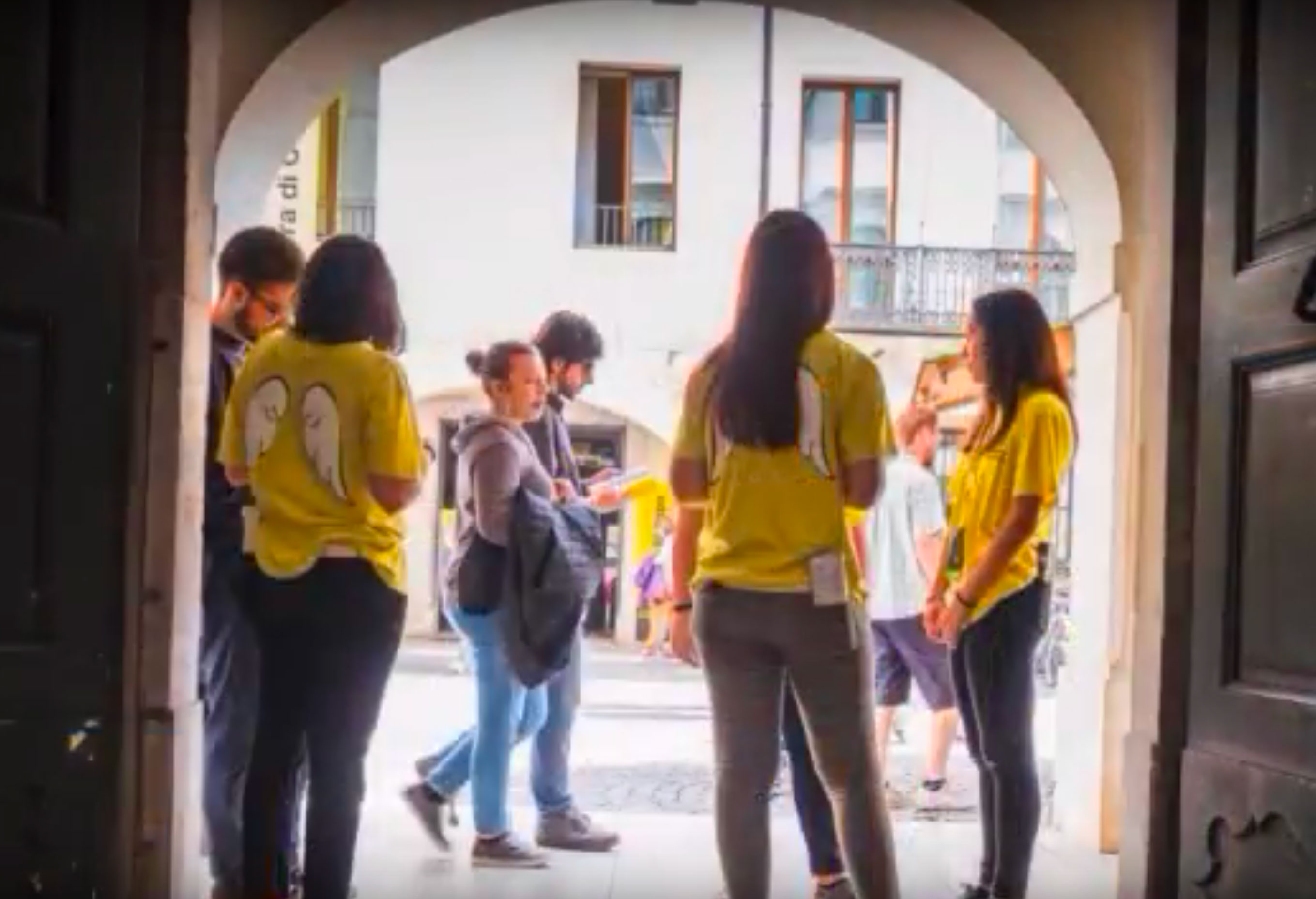 Durante l’evento, gli angeli fornivano qualsiasi informazione potesse essere utile. Energici ed entusiasti, per loro una meravigliosa occasione da vivere all’interno dell’organizzazione di un festival culturale, avere l’opportunità di essere parte attiva di un evento così coinvolgente. Tutti gli angeli hanno seguito degli incontri di formazione qualche mese prima in modo da offrire un servizio il più qualificato possibile, nonostante la loro giovane età e il tempo a disposizione tra i vari impegni scolastici.
