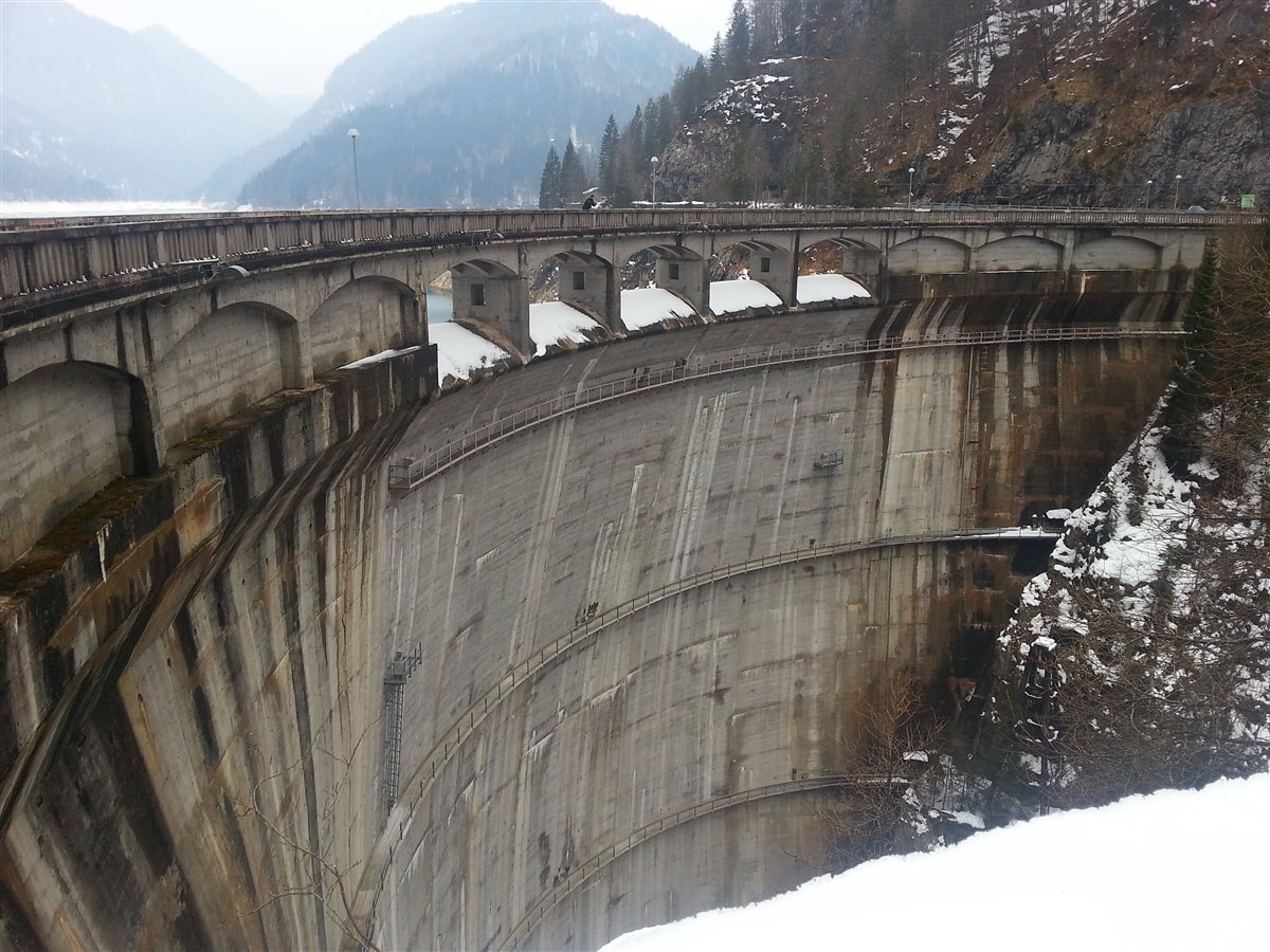 Dal piazzale della chiesa di S. Osvaldo la vista è stupenda. Posso vedere in lontananza anche il lago formatosi a seguito della costruzione dell'imperiosa diga, eretta durante la Seconda Guerra Mondiale, anche con il lavoro di circa 300 prigionieri di guerra neozelandesi.