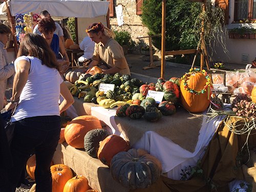 Strictly typical medieval costumes were also worn by the sellers at the stalls scattered all around the village and featuring traditional products, local handicrafts and, of course, pumpkins of all varieties and sizes; these are the undisputed stars of the festival. Like many other girls and young women, won over by the folkloric mood, we improvised ourselves medieval ladies with an ornament of pretty wreaths of flowers created by the artisans of the village.