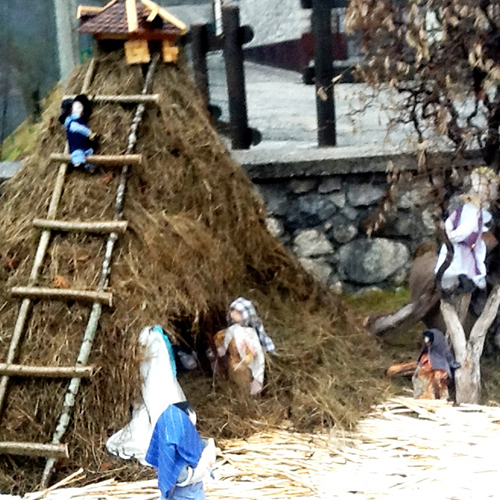 E rimango proprio stupita! La bellezza naturale della valle, le enormi pietre, il torrente, il paesino arroccato e minuscolo ma è quando inizio a girellare per le vie che ritorno una piccola, entusiasta cacciatrice di presepi.
