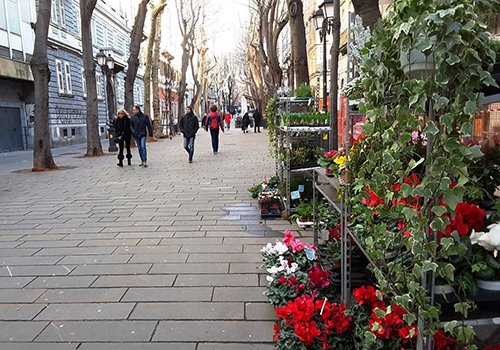 Viale XX Settembre è da sempre considerata la strada dei cinema, dallo storico Excelsior (che non c’è più) ad altre sale permanenti. Camminando lungo il passaggio pedonale bordato da platani, aceri e tigli, di tanto in tanto abbiamo alzato gli occhi ed ammirato i tratti architettonici mitteleuropei di alcuni palazzi, con i balconi sospesi e le veneziane in legno. In questa strada sono state girate diverse scene dei film “La Sconosciuta” di Giuseppe Tornatore e di “Le Stade de Wimbledon” del regista francese Mathieu Amalric.