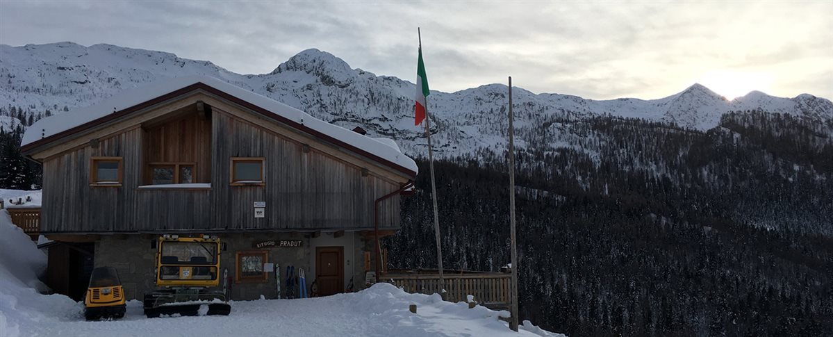 Informazioni: Il Rifugio Pradut, nei giorni di apertura, offre anche il servizio di alloggio, utile per chi vuole intraprendere gli altri itinerari che partono proprio da questo punto verso le cime circostanti. Durante la stagione invernale, è inoltre possibile richiedere il trasporto in rifugio tramite motoslitta o gatto delle nevi. Accanto alla struttura si trova la vecchia Casera Pradut, aperta tutto l’anno.