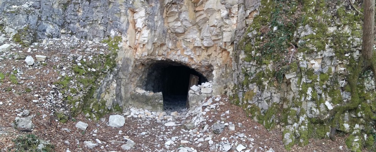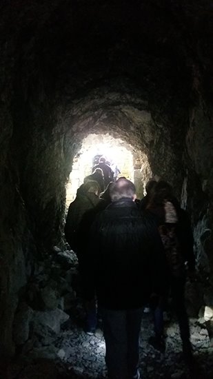 Davanti all'entrata nella roccia ci siamo fermati ad ascoltare un'interessante introduzione storica di Fabio, il responsabile del gruppo escursionisti triestini, che si occupa di organizzare escursioni storiche, naturalistiche e culturali nella zona del Carso triestino e sloveno.