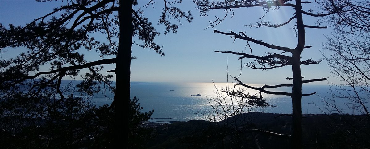 Il racconto a tratti assume toni divertenti nella ricostruzione e anche i più piccoli esploratori presenti sembrano apprezzare, nell'attesa di entrare finalmente nel bunker. Qui muniti di torcia e scarpe da trekking si entra nel buio totale e si prosegue nei due corridoi, le pareti rocciose brillano sotto i fasci di luci. Alla fine ci attende uno spiraglio, l'uscita del bunker: la vista è mozzafiato: una terrazza naturale sul Golfo di Trieste, una posizione strategica durante la guerra.