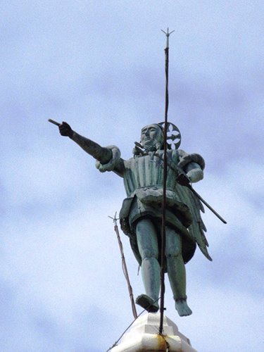 Da segnalare la statua segnavento dell'Arcangelo Michele, molto particolare perché quel giglio che ha in mano alluderebbe più all'Arcangelo Gabriele, un ambone marmoreo con decori moreschi e un trono di pietra visibile dal corridoio, situato in fondo a destra, che collega l'aula della basilica alla sacrestia e al lapidario. Inoltre è possibile ammirare la statua della Madonna degli Angeli che ogni prima domenica di luglio è indiscussa protagonista del Perdòn de Barbana.