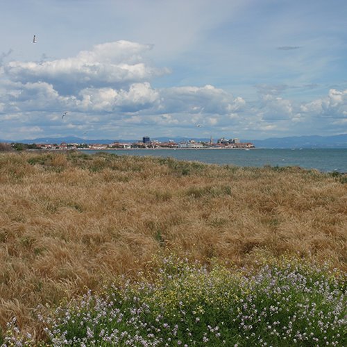 La vegetazione non manca e piante e fiori davvero particolari colorano il paesaggio di questa lingua di terra della laguna.