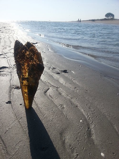 Mi piace passeggiare sul bagnasciuga, che qui è un lunghissimo tappeto di conchiglie che segna il confine tra terra e mare. Un confine che può spostarsi anche di molto nell'arco di una giornata. Lo sappiamo benissimo io e Marco. Un tardo pomeriggio di fine autunno, Gabry, la sua barca, era rimasta in secca, e a noi due (naufraghi per davvero sull'isola), non restava altro da fare che aspettare, al buio sotto le stelle, che la marea risalisse per poter tornare a Grado.