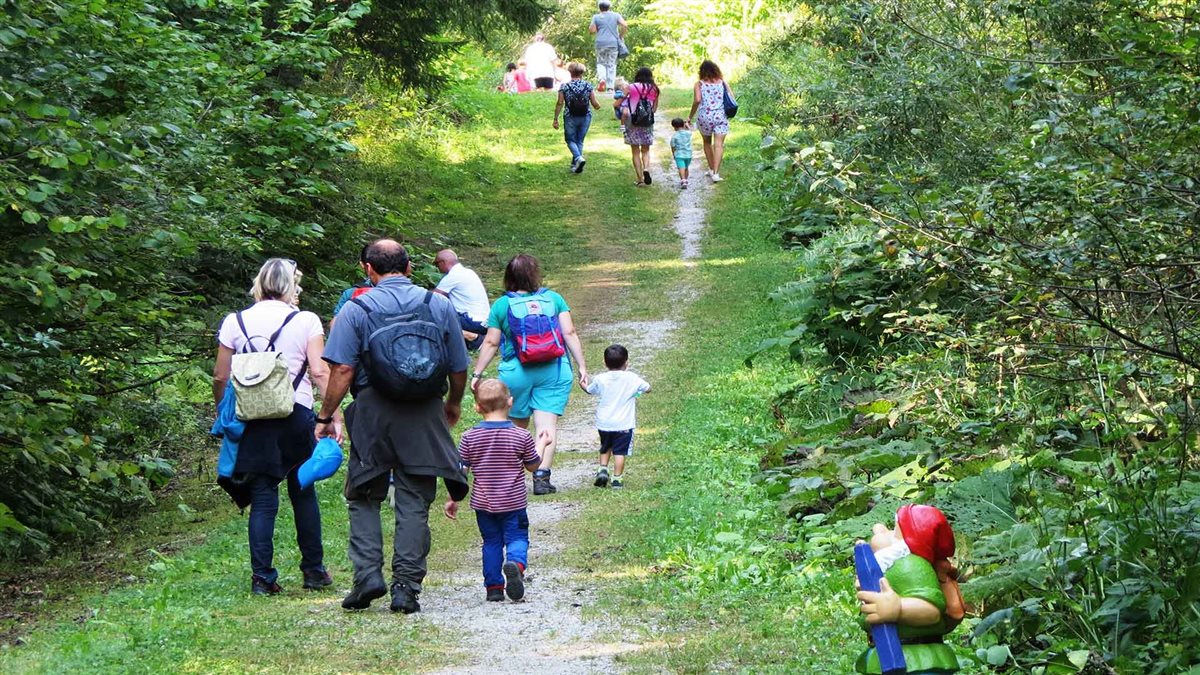 É stato così realizzato un piacevolissimo sentiero, prettamente pianeggiante, a misura tanto di bimbi che di passeggini. Il sentiero costeggia il torrente Bartolo e porta dalla zona di Tarvisio Basso in Via Torrente sino all’inizio del centro cittadino nella zona dei Campi da Sci Duca D’Aosta. Ovviamente l’attrattiva sono proprio le numerose riproduzioni degli gnomi che abbelliscono e ti accompagnano lungo tutto il percorso. Quest’ultimo peraltro può essere imboccato anche in senso inverso ed è arricchito da qualche panchina per una sosta o un pic-nic ed un’area attrezzata con scivolo ed altalene.
