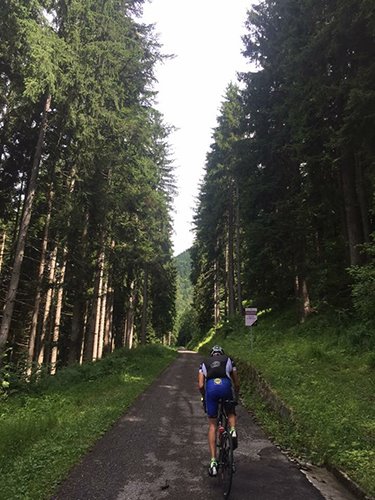 Ich lege hier in Karnien praktisch über 25.000 km jährlich mit dem Fahrrad zurück und erklimme all seine herrlichen 49 Bergauffahrten, die aus ihm das Welterbe des Straßenfahrradsports machen.