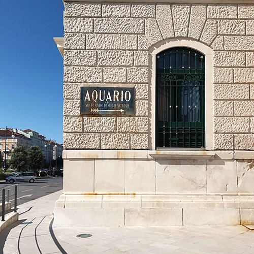 Das Aquario Marino von Triest (ohne C, weil sich der Name vom antiken lateinischen Wort Aquarium ableitet) liegt nur wenige Gehminuten von der Piazza Unità entfernt. Der Weg dorthin ist sehr angenehm, weshalb wir beschließen, zu Fuß zu gehen und das Meer zu bewundern.