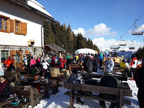 Bei all diesen Abfahrten verbrennen wir Kalorien und die aus den Hütten kommenden Düfte laden zu einer Rast ein. Nur in welcher Hütte? Wir haben die Qual der Wahl. Nicht nur was das wo, sondern auch was die gebotenen Gerichte betrifft. Salsiccia, Frico, Polenta, Käse, Wurstwaren, Teigwaren, Grillfleisch, Fisch ... Entschuldigen Sie bitte, wenn ich zu sehr auf die Speisen eingehe, aber der Hunger ist groß!