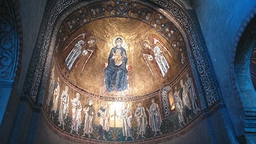 Trieste è famosa per essere uno splendido esempio della cultura mitteleuropea, ma la sua vocazione all’integrazione di culture diverse affonda le radici ben più indietro nei secoli e la ritroviamo in uno dei suoi simboli: la Cattedrale di San Giusto. Il colle omonimo su cui sorge l’edificio sacro è un must per chi visita la città: lì vi sono anche il Castello, il Civico Museo di Storia ed Arte e Orto Lapidario. E proprio la chiesa, così come la vediamo oggi, fu eretta sui resti di un’antica basilica, a sua volta costruita sopra un tempio romano, dedicato alla Triade capitolina (Giove, Giunone e Minerva). Già nella facciata ci viene raccontata una storia millenaria: gli stipiti del portale, ad esempio, sono ricavati da una stele funeraria romana (datata al I secolo d.C.), i busti bronzei sono di epoca moderna e il rosone è gotico. Gli interni della cattedrale, a cinque navate, offrono uno spettacolo unico. I mosaici dell’abside sinistra che, con la loro luce e imponenza, attraggono inevitabilmente lo sguardo del visitatore, sono chiaramente d’ispirazione bizantina e risalgono al XII secolo circa. Degli innumerevoli tesori che qui potete ammirare, non si può non menzionare l’alabarda di San Sergio, poi divenuta emblema della città o la statua di arenaria raffigurante il compianto sul Cristo morto. Lo stesso rosone della facciata, visto dall’interno, lascia impressionati per la sua magnificenza e il modo di filtrare la luce esterna. Anche l’interno della cattedrale è quindi un tripudio di stili artistici e apporti culturali diversissimi che però hanno qui saputo trovare un equilibrio armonioso. È un racconto di pietra, colore, materia; una storia esposta in bella vista ai nostri occhi, la storia di una città dalla “scontrosa grazia”, di un passato lontanissimo ma ancora presente, un racconto di simboli e identità fusi insieme.