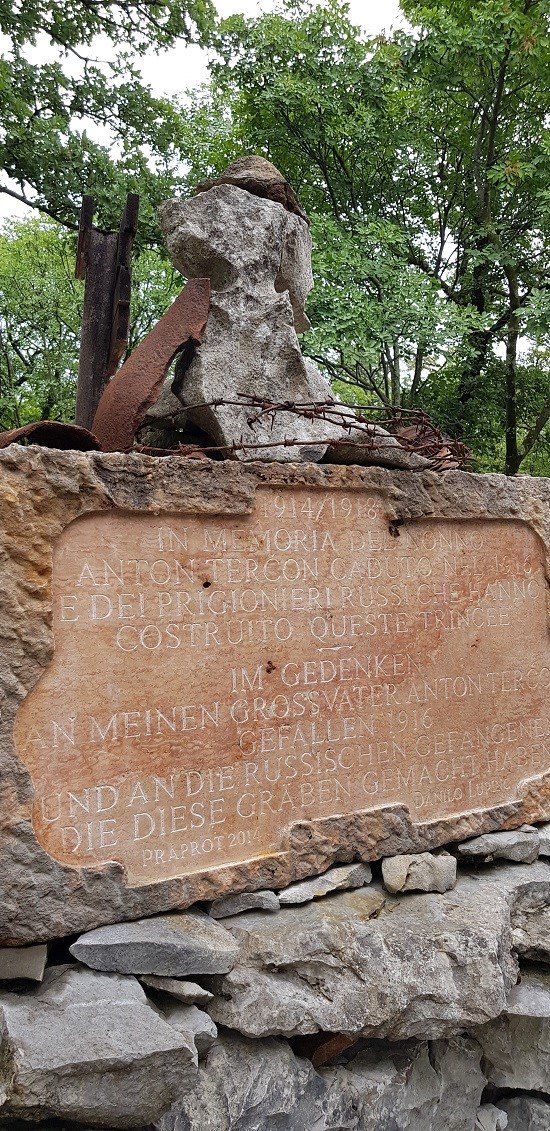 "Wir befinden uns im Park Lupinc Škaljunk, ein Ort, der von meinem Vater Danilo wieder hergerichtet und gepflegt wurde", erzählt uns Lara. Der von den russischen Gefangenen während des Ersten Weltkrieges gebaute Schützengraben erinnert uns daran, wie hart das Leben hier während des Krieges war. Hier im österreichisch-ungarischen Gebiet kämpften polnische, tschechische, ungarische und bosnische Soldaten. Die jungen Leute des Ortes wurden nach Russland geschickt, um zu vermeiden, sie "zu Hause" kämpfen zu lassen, weil das emotional unangemessen schien.