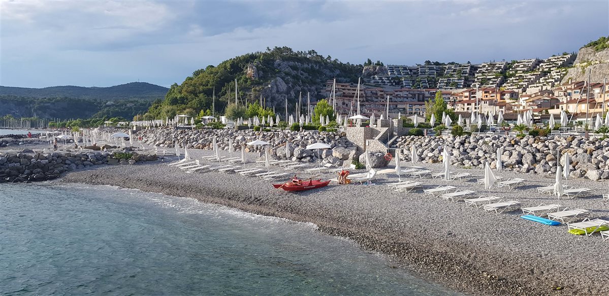 Wenn Sie sich einen Tag als VIP gönnen und in ein elegantes Ambiente eintauchen möchten, ist dies der richtige Ort für Sie: Portopiccolo, ein Küstenort, der 2014 im ehemaligen Kalksteinbruch von Sistiana im Naturschutzgebiet der Felsklippen von Duino angelegt wurde und auch auf dem Seeweg erreichbar ist. Es handelt sich um ein Modell für die Umweltsanierung, auf das die Region stolz sein kann. Hier werden nämlich weder CO2, noch Verbrennungsgase produziert, während die Klimatisierung und Brauchwassererzeugung mithilfe einer geothermischen Wärmepumpenanlage erfolgt.