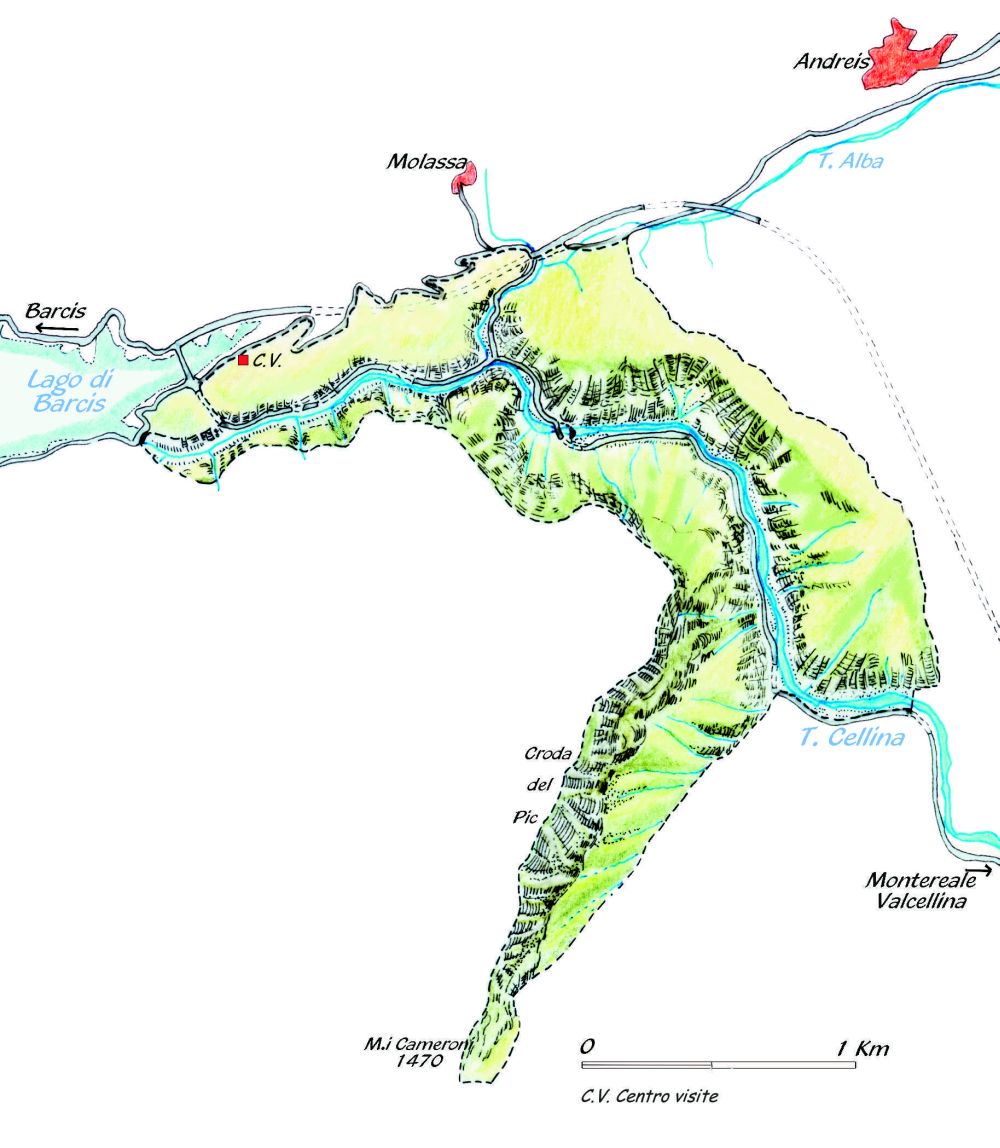 Das Nature Reservat Forra del Cellina ist 300 Hektaren zwischen die Orten Andreis, Barcis und Monterale Valcellina, in den Bergstreifen des Flusses Cellina.