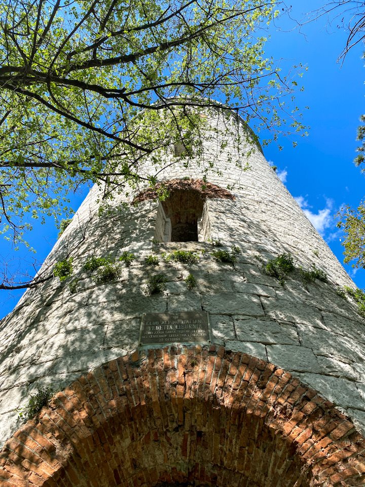Pedalando nel bosco di pini tra Aurisina e Santa Croce, scorgerai pian piano una torre cilindrica in pietra: si tratta della Vedetta Liburnia.