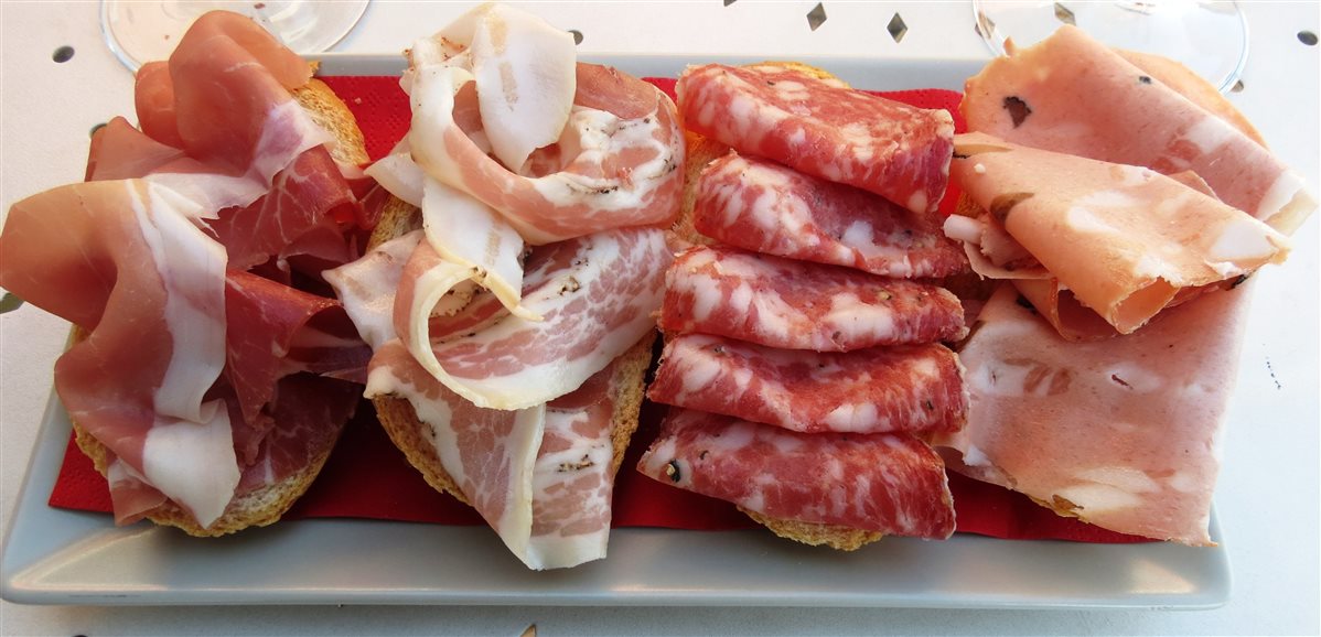 Ich habe mich für die Hosteria entschieden und etwas Wein und geröstetes Brot, vor allem mit "Osvaldo", gewählt, doch wir haben es auch an anderen köstlichen Aufschnitten nicht fehlen lassen.