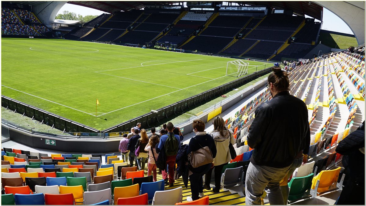 Es ist ein Samstagmorgen, einer der Tage, an dem man an der Stadium Experience teilnehmen kann (nach Reservierung). Es handelt sich um eine Führung in der extrem modernen Sportanlage, in dem das Team des Fußballvereins Udinese Calcio zuhause ist. Die Tour dauert ca. eine Stunde und auch für diejenigen, die wie ich keine Fußballbegeisterten sind, ist es keineswegs langweilig.