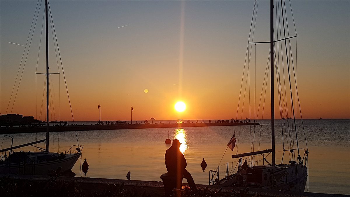 In letzter Zeit wird der Sonnenuntergang in Triest zu einer mondänen Gelegenheit, ein Moment der Kunst, der Kultur, ein Treffpunkt. Doch was ist im Grunde ein Sonnenuntergang anderes als ein Kunstwerk der Natur?
