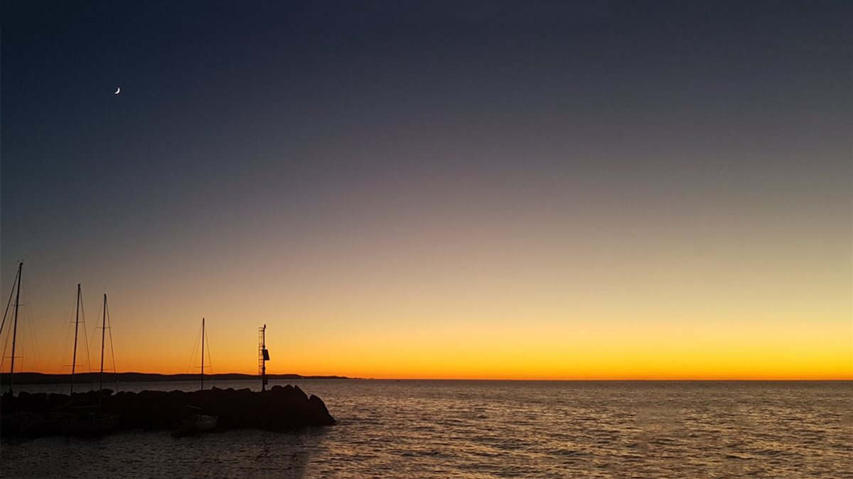 Barcola und sein kleiner Hafen, von dem aus die Sonne zwischen einer Segelstange und der nächsten immer spektakuläre Färbungen annimmt .
