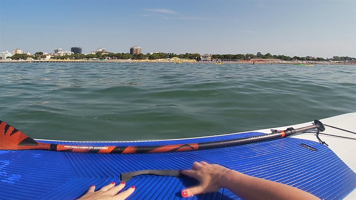 Bei meinem ersten Mal Stehpaddeln begleitet mich Giovanni, einem Lehrer von “Kite Life - Grado”. Zu Beginn zeigt er mir die Grundlagen (das Paddel und das Board) und erklärt mir die Unterschiede zwischen den Boards und wie man das Paddel richtig hält. Ein kleine Einführung und schon geht es ins Wasser!