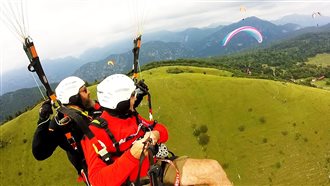 Der Gleitschirm ist ein spezieller Fallschirm mit einer rechteckigen Form, mit dem man durch den Schub der Beine abheben kann. In der Tat sind die Berghänge perfekt für den Flug.