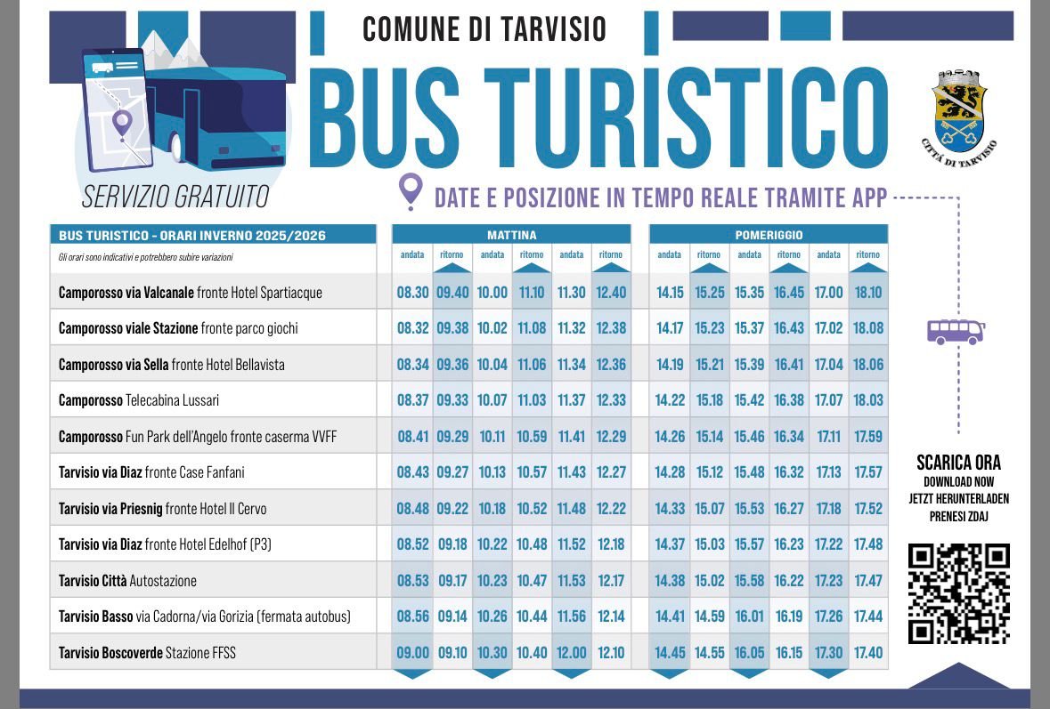To access full details and track the bus in real time, simply download the Tarvisio App.