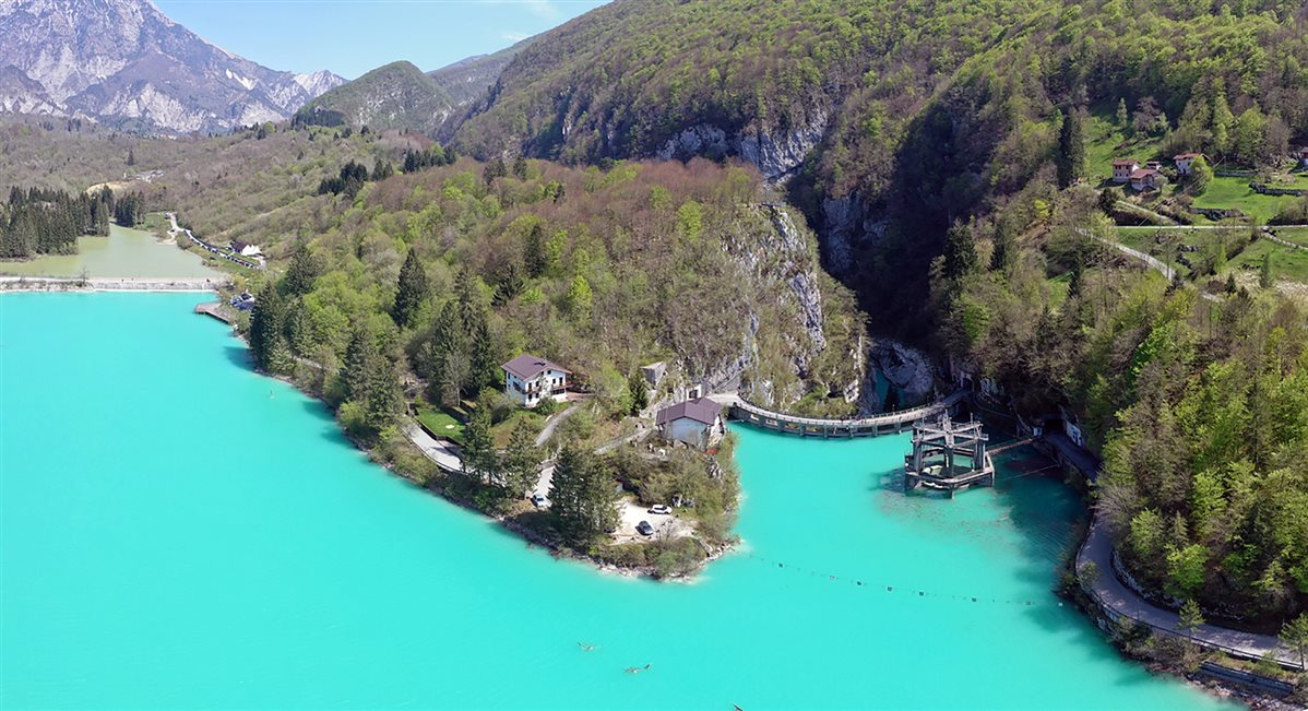 Lake Barcis and the old road in the Valcellina