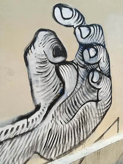 The animal, which lies quietly along the Vicolo delle Acque, is a reference to one of the protagonists of Toffolo’s comic-strip book: Il re bianco. The work is dedicated to Copito de Nieve, the albino gorilla that died of cancer in the Barcelona  Zoo in after almost 40 years of “imprisonment”. The absolute difference: too human to be a beast and too animal to be a man. Using the walls of abandoned buildings as if they were large white sheets of paper, the artist has created a masterpiece of Pordenone street art. With this mural, he has “donated” to his city a burst of light amidst the grey of the buildings.