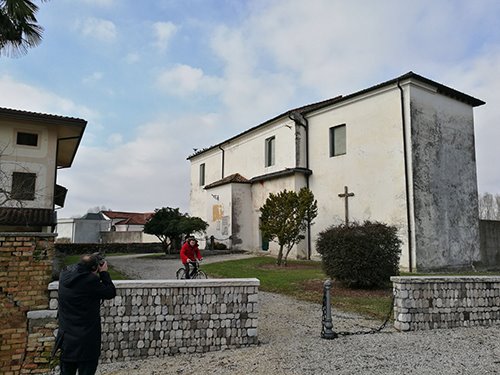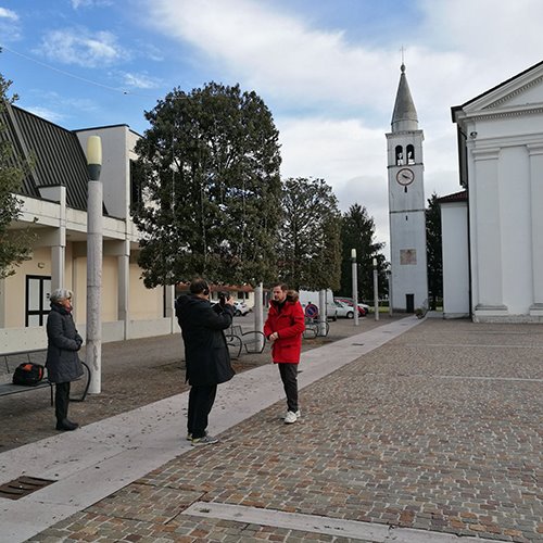 Grazie alla guida di Marta Mio, appassionata di storia e di arte sacra locale, abbiamo visitato angoli più o meno nascosti di Fiume Veneto, Pescincanna e Praturlone. Ovviamente alla ricerca di campanili. Partendo dalla piazza e dalla chiesa di Fiume Veneto, abbiamo percorso il fiume fino all’antico borgo di Fiume Piccolo. Ricca di fascino, la pieve di San Michele Arcangelo ci ha colti di sorpresa con i suoi affreschi del 1200, tra i più antichi della provincia. Il borgo “fantasma” di Marzinis è un caseggiato dai mattoni rossi in cui il tempo si è fermato: fino a qualche decennio fa ci vivevano circa 250 persone, ora è una zona disabitata. Dopo una veloce visita al museo dell’aeronautica del Friuli Venezia Giulia, l’ultima tappa alla chiesetta di Praturlone.