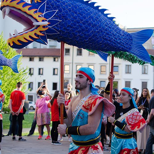 L'edizione inizia sotto il buon auspicio della danza del pesce, solitamente messa in scena durante il Capodanno per richiamare denaro e fortuna in abbondanza, una suggestiva coreografia composta da preparatissimi atleti, che hanno animato le sagome interamente realizzate a mano.
