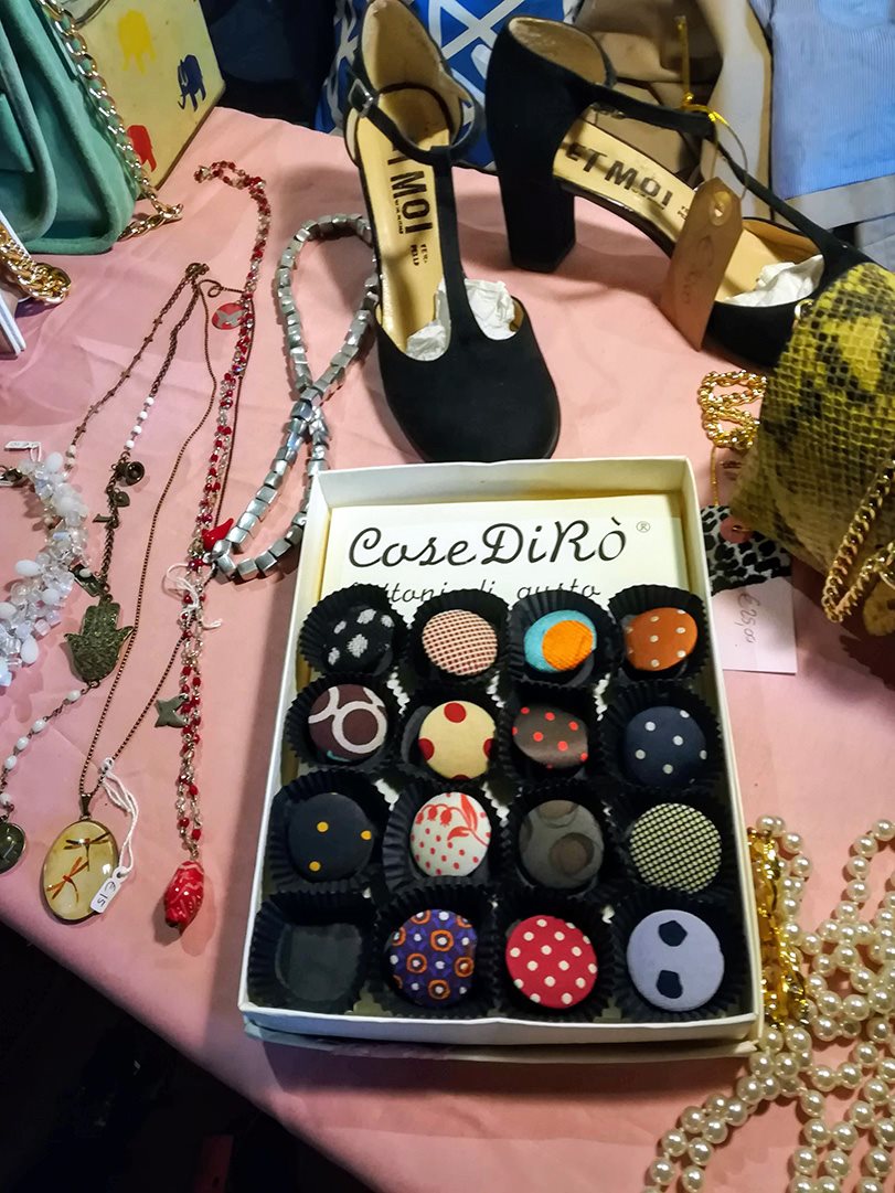 Al nostro arrivo ci siamo catapultate all’interno del Complesso dei Battuti, la sede dell’antico ospedale di epoca trecentesca, oggi interamente restaurato e dedicato ad ospitare eventi ed esposizioni. Sin dall’ingresso abbiamo percepito l’entusiasmo delle venditrici e delle clienti a caccia dell’acquisto azzeccato ad un giusto prezzo: non solo abiti ma anche accessori, borse, scarpe e capispalla esposti con cura e descritti sapientemente dalle legittime proprietarie.