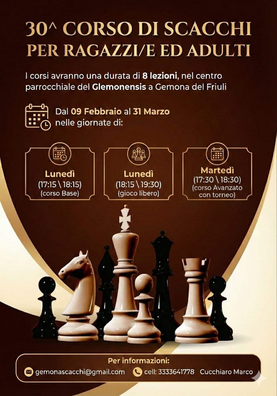 Tornano a Gemona i corsi di scacchi, giunti alla 30ª edizione!