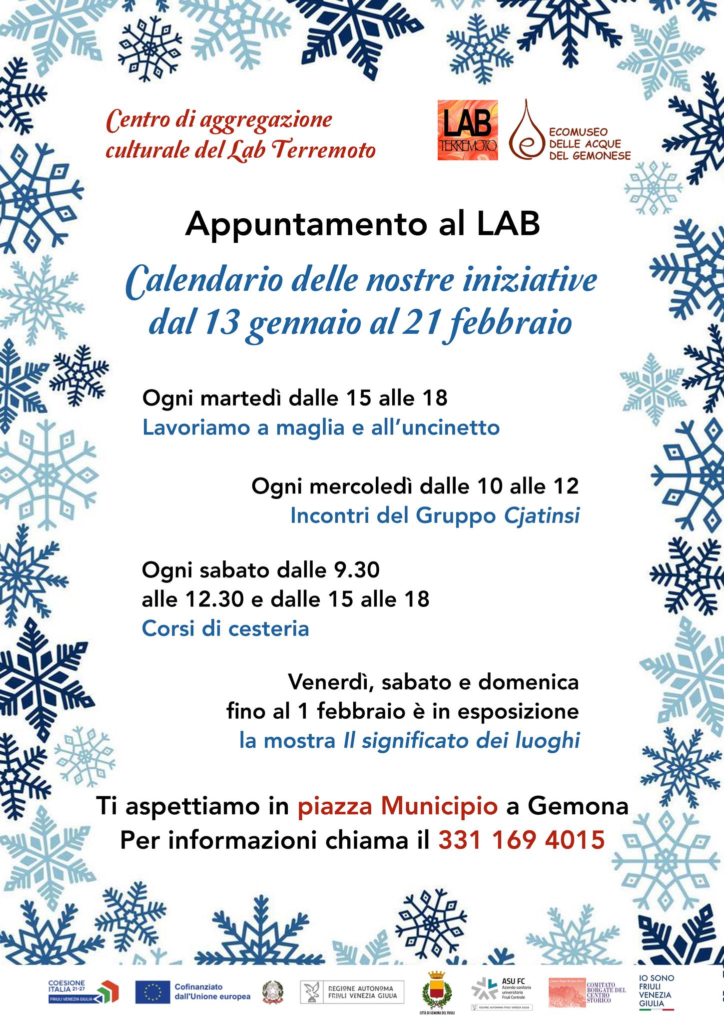 Condividiamo in allegato il calendario con le iniziative del Centro di aggregazione culturale del Lab Terremoto in programma dal 13 gennaio al 21 febbraio. Vieni a trovarci!