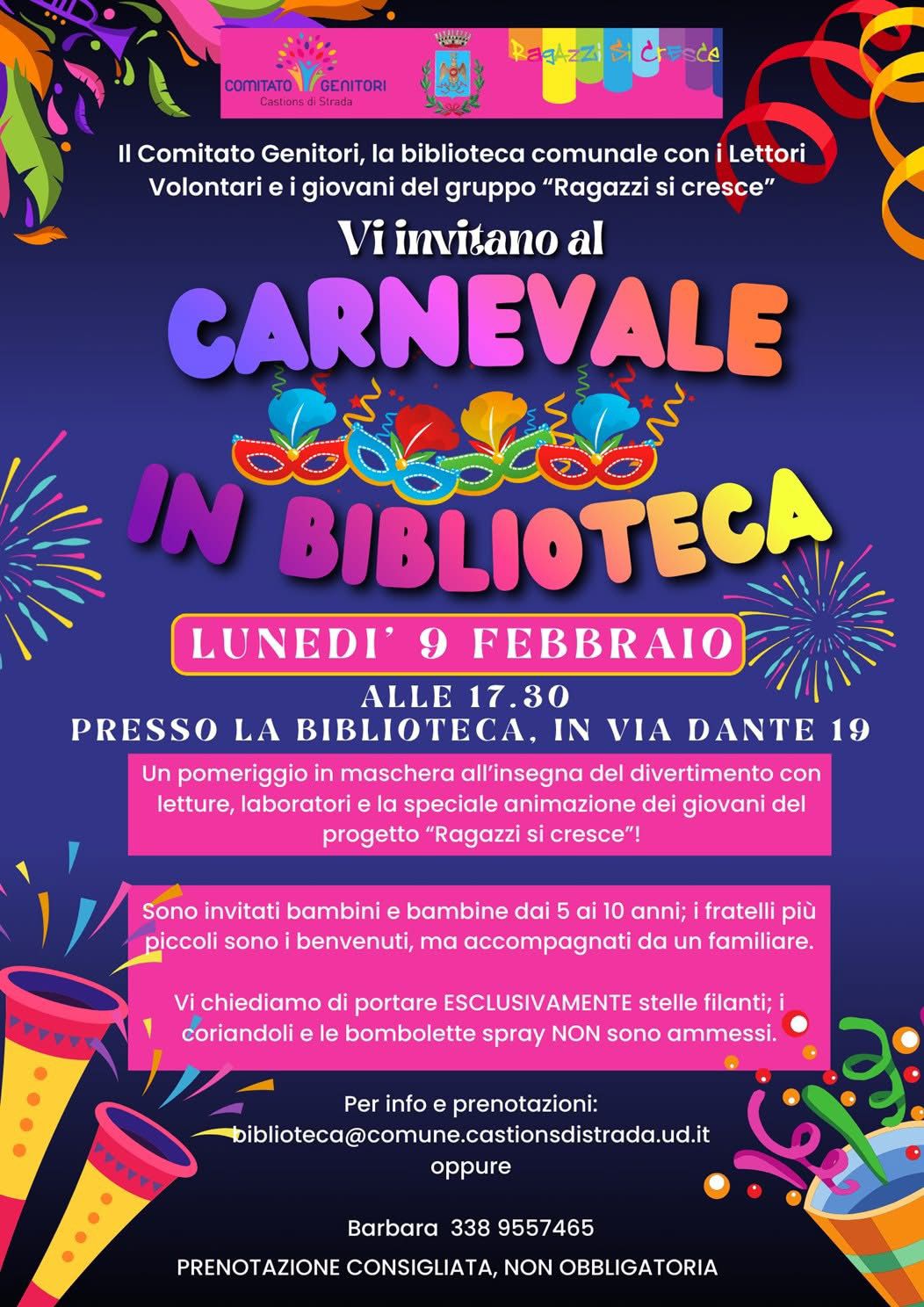 Un pomeriggo in maschera all'insegna del divertimento con letture, laboratori e la speciale animazione dei giovani del progetto "Ragazzi si cresce".