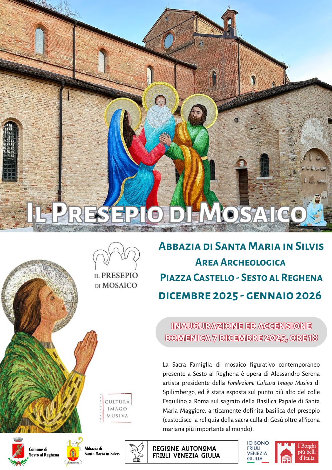 La Sacra Famiglia di mosaico figurativo contemporaneo, opera di Alessandro Serena artista presidente della Fondazione Cultura Imago Musiva di Spilimbergo, è stata esposta sul punto più alto del colle Esquilino a Roma sul sagrato della Basilica Papale di Santa Maria Maggiore, anticamente definita basilica del presepio (custodisce la reliquia della sacra culla di Gesù oltre all'icona mariana più importante al mondo). Un onore e un privilegio che si ripete a Sesto al Reghena.