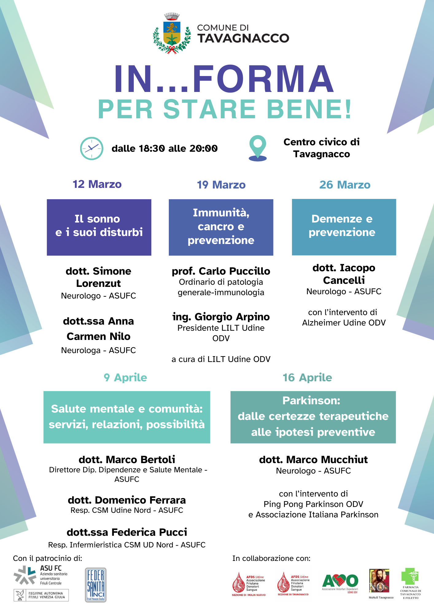Comune di Tavagnacco, ASU  FC, Federsanità ANCI, Regione Friuli Venezia Giulia e associazioni locali