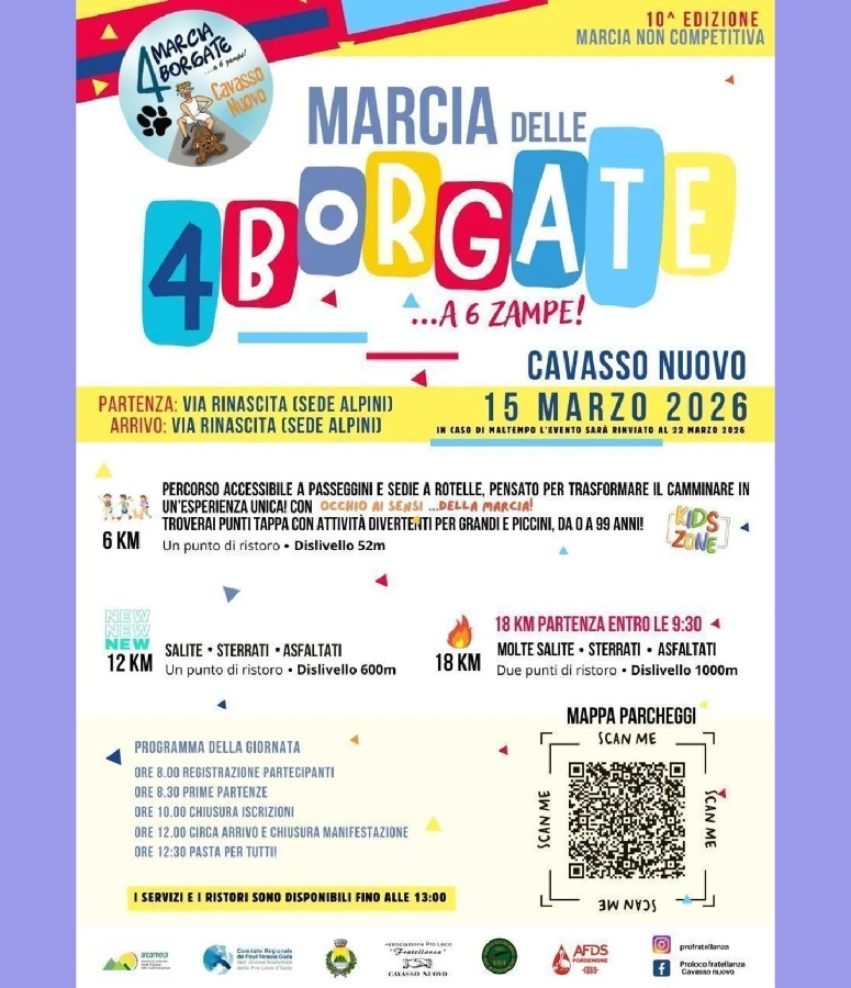 da 6km con 52m di dislivello, tutto asfaltato adatto a passeggini e carrozzine.