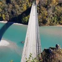 Da queste parti è labile il confine tra pianura e montagna, e mi ritrovo all'improvviso nella penombra del bosco, tra funghi, torrenti a cascate. All'improvviso si fa luce tra gli alberi il fiume dentro il quale l'acqua trova il suo salone di bellezza naturale: il Tagliamento. Mi trovo sul punto panoramico della stretta di Pinzano. Luogo testimone di alcune battaglie legate alla ritirata di Caporetto dell'esercito italiano. A pochi metri da qui, si trova l’Ossario germanico incompiuto di Col Pion.