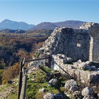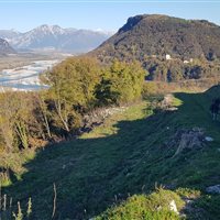 Dopo una lunga pausa fermo ad ammirare il Re dei fiumi alpini, riprendo il cammino in direzione del Castello di Pinzano. Arrivato quasi in cima vengo accolto da tre simpatiche caprette, con le quali evito di fare confidenza per non incorrere in qualche affettuosa carica improvvisa. Poco più in là due asini se la spassano felici tra le rovine del castello e mi fanno compagnia mentre fotografo il panorama a 360°. Nelle vicinanze infatti, c’è un’azienda casearia agricola che produce formaggi caprini e tante altre bontà.