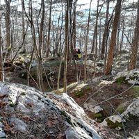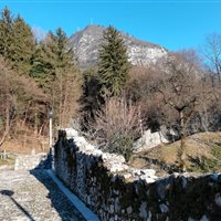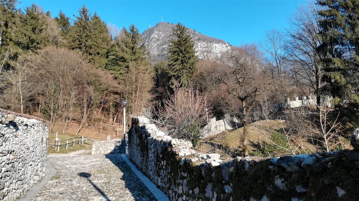 Lascio il sentiero e mi sposto in direzione della parete rocciosa seminascosta dalla boscaglia. Nel mio girovagare mi ritrovo casualmente sul sentiero, all'inizio della discesa di rientro. Scendo corricchiando e in un lampo arrivo in Pra Castello, il grande pendio erboso tra Tolmezzo e Precefic. Scendo lungo la scalinata a ridosso delle antiche mura di cinta, arrivo in via Roma e poi in piazza XX Settembre, al punto di partenza proprio quando le campane cominciano a suonare il mezzogiorno: la mattina è finita e l'anello di Precefic è chiuso.