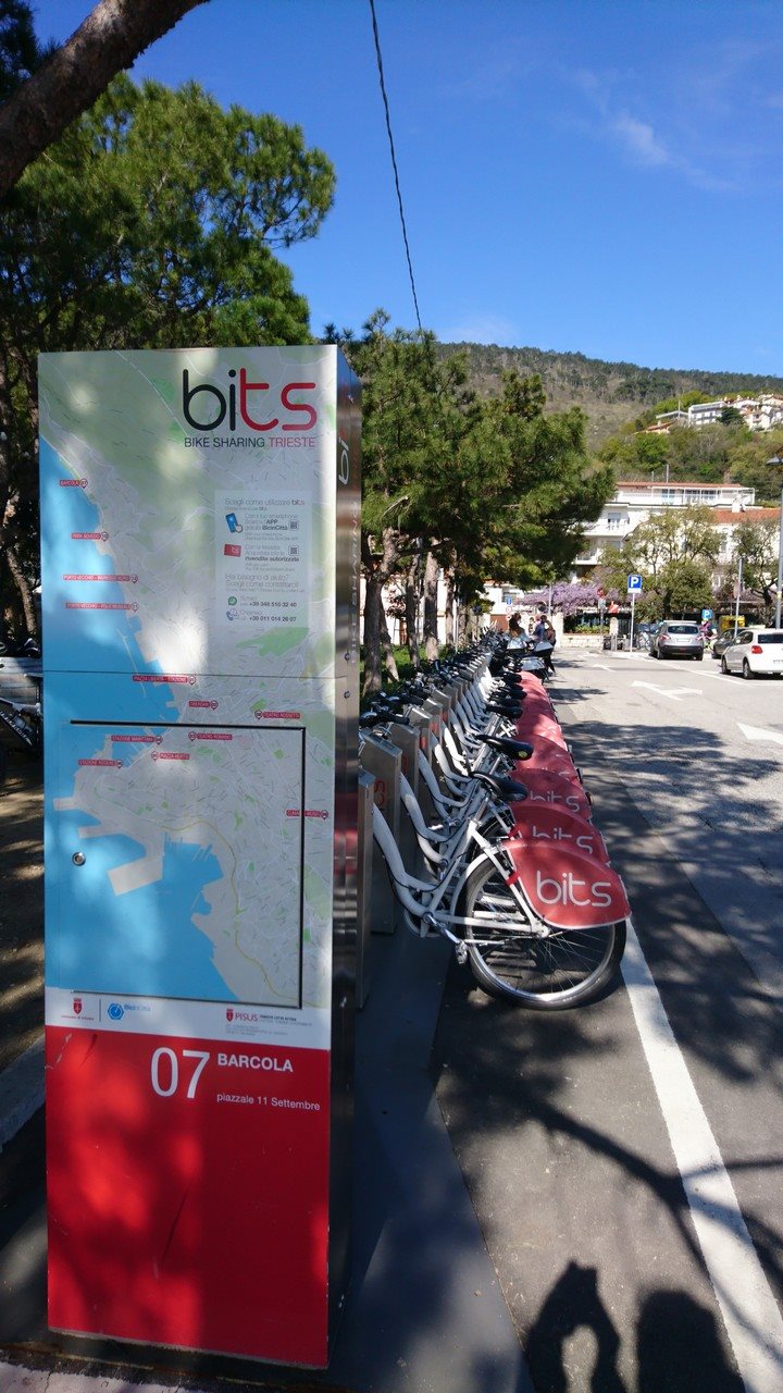 È noto che Trieste è una città di piccole dimensioni con un centro storico percorribile interamente a piedi ma è anche vero che tante delle sue bellezze sono più comodamente raggiungibili con un mezzo a due ruote. Per un giorno decido di fare la turista nella mia città e di provare l’ebbrezza del bikesharing. Cerco nella mappa dell’app #BicInCittà la stazione più vicina ed essendo la sottoscritta di indole pigra seleziono il prelievo di una e-bike. La registrazione dal sito http://www.bicincitta.com, o dalla stessa app è davvero semplice e veloce e i costi sono davvero esigui! Così dopo avere investito ben 9 € in salute, salto in sella alla mia nuova compagna di avventure e parto in direzione del lungomare di Barcola. Il percorso è ben noto ma non per questo meno entusiasmante e prevede l’attraversamento di un’area urbana molto vasta una volta inutilizzata, ma da qualche anno in forte fase di riqualifica e valorizzazione: il Porto Franco Vecchio. Una volta attraversato il valico d’ingresso i vecchi hangar e magazzini portuali fanno bella vista di sé e testimoniano questo aspetto essenziale della città. Stando attenta ai vecchi binari che ahimè ancora affiorano dall’asfalto in alcuni tratti, entro in un’altra dimensione spazio-temporale dove a momenti il tempo sembra essersi fermato. Avanzo e dopo non molto intravedo il Magazzino N.26 oggi sede del Museo del Mare che ospita la bella collezione delle Navi del Lloyd Triestino e ancora più in là la Centrale idrodinamica, entrambe imperdibili. Una volta uscita in Viale Miramare poco prima del parcheggio Bovedo, percorro l’ultimo chilometro e arrivo alla stazione BITS n.7 di Barcola dove, dopo aver riagganciato la mia fedele e-bike nella colonnina, vado a gustarmi la meritata ricompensa al “chiosco” della pineta e a godermi il tramonto.