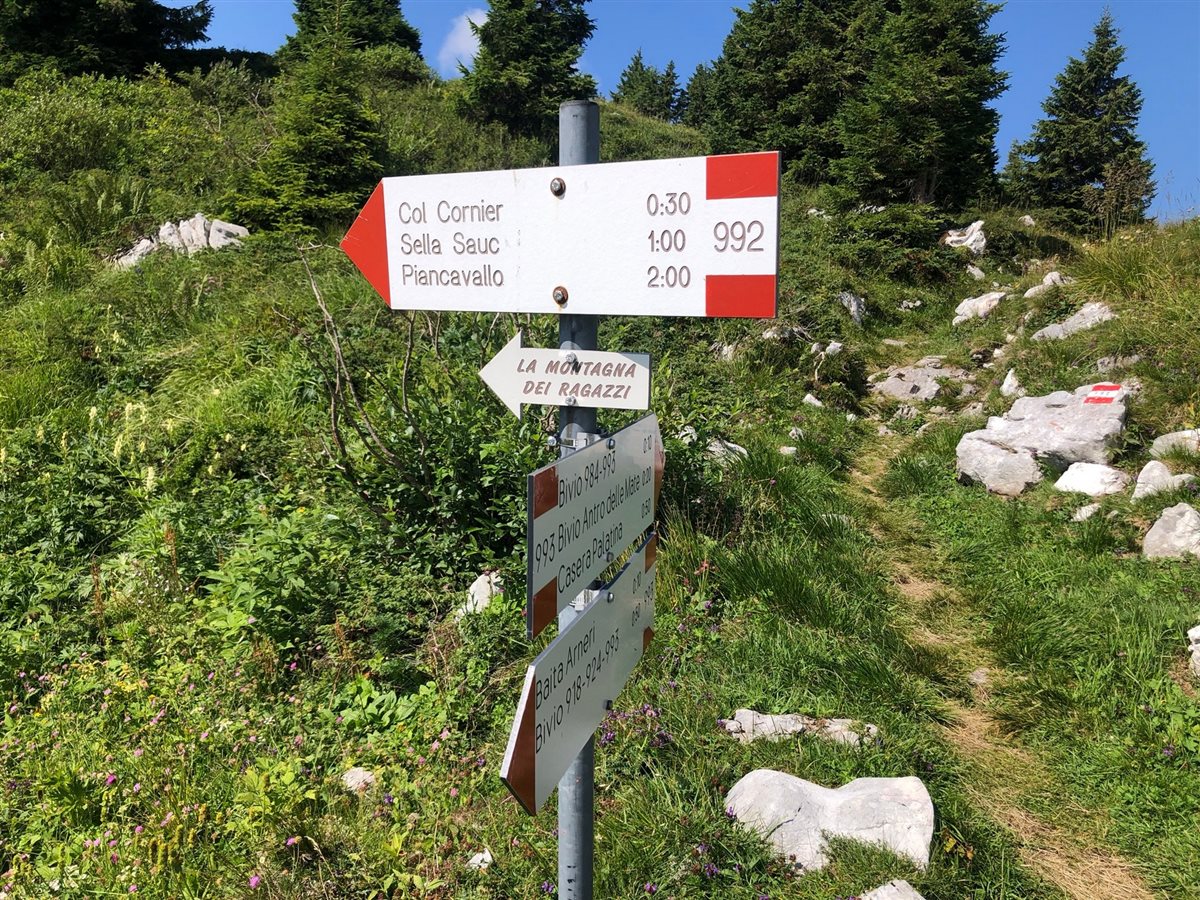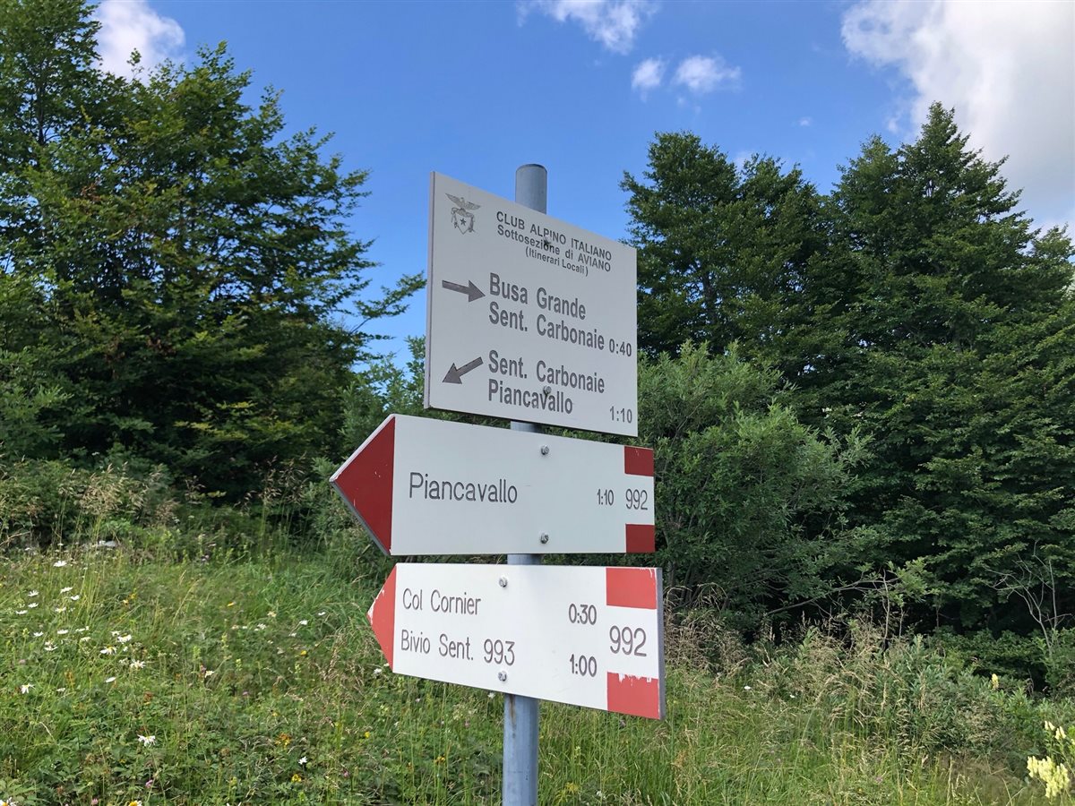 Per raggiungere il Col Cornier, meta di questa escursione, ci aspetta ancora un po' di salita (quasi 200 MT di dislivello) che si sviluppa, lungo il segnavia CAI 992, su altri 2km di sentiero che non risulta essere mai tecnicamente e fisicamente impegnativo. Lungo tutta la camminata, che per buona parte si svolge quasi “in cresta” lo sguardo viene rapito dalla bellezza della natura circostante. Dal lago di Santa Croce al bosco del Cansiglio, dalle vette del complesso del Tremol alla pianura pordenonese.