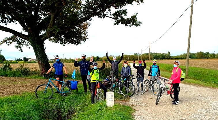 Il giro in bici dopo Ruda lungo il Cammino Celeste è ben segnato anche con il cippo oltre al pesciolino azzurro.